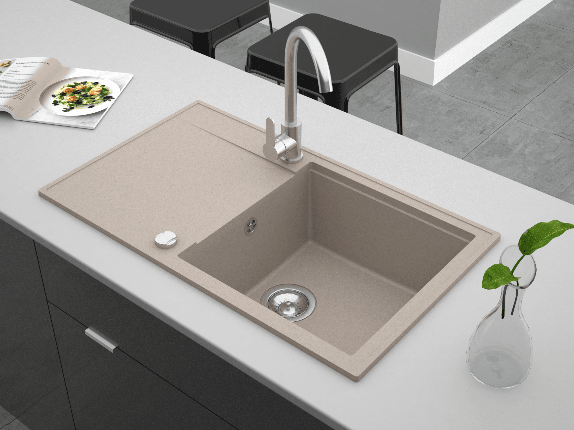 Bei Moderno finden Sie Küchenspülen in vielfältigen Ausführungen, die perfekt auf Ihre Bedürfnisse abgestimmt sind. Unsere Granitspülenkollektion bietet Ihnen die Möglichkeit, genau die Spüle auszuwählen, die Ihre Küche zum stilvollen Mittelpunkt macht – elegant, funktional und ganz nach Ihrem Geschmack.