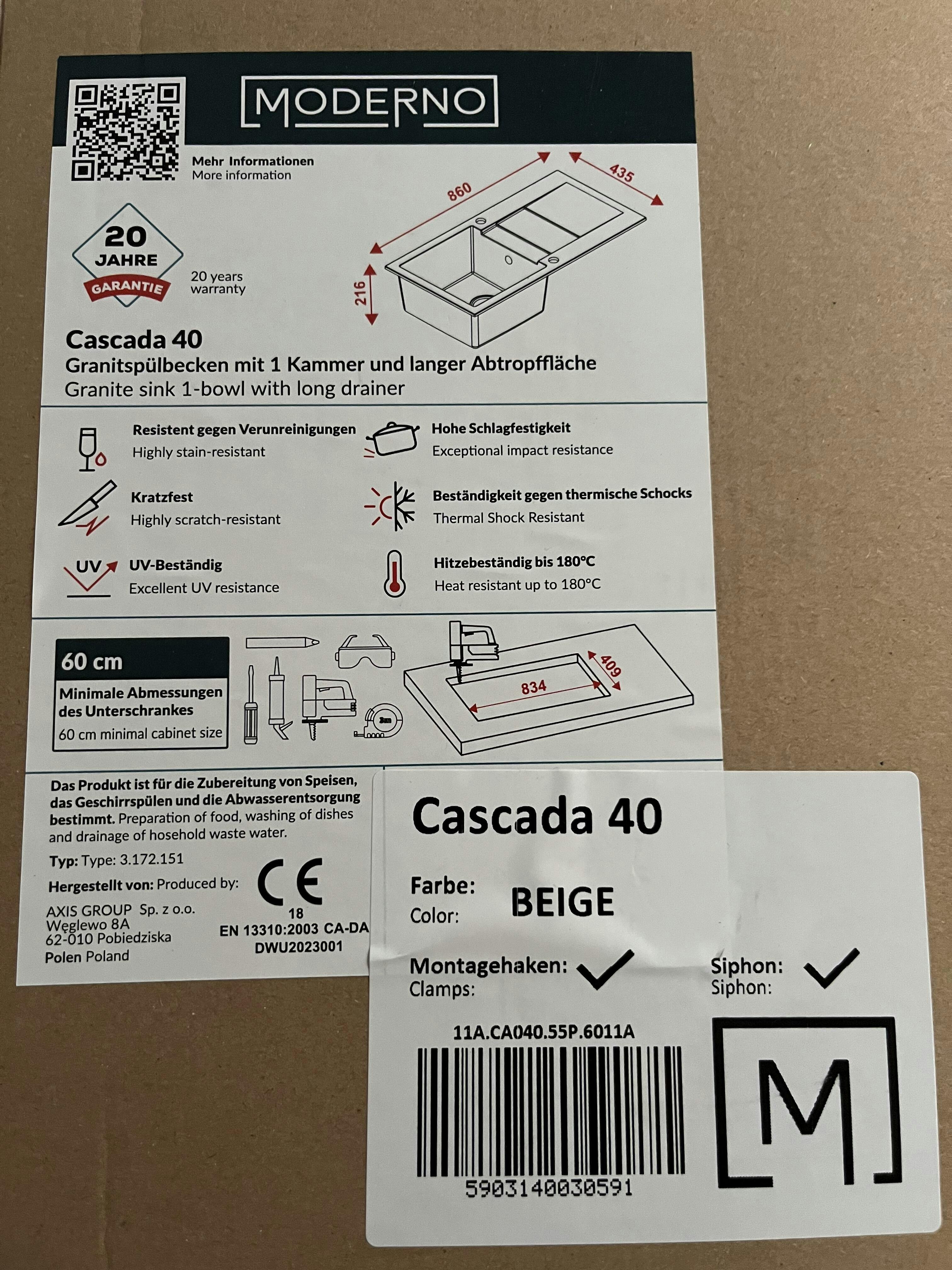 Die CASCADA-40 Granitspüle ist die perfekte Kombination aus robustem Design, Funktionalität und ästhetischem Mehrwert. Gefertigt aus hochwertigem Granitmaterial, überzeugt sie durch ihre außergewöhnliche Langlebigkeit, Kratzfestigkeit und Hitzebeständigkeit.
