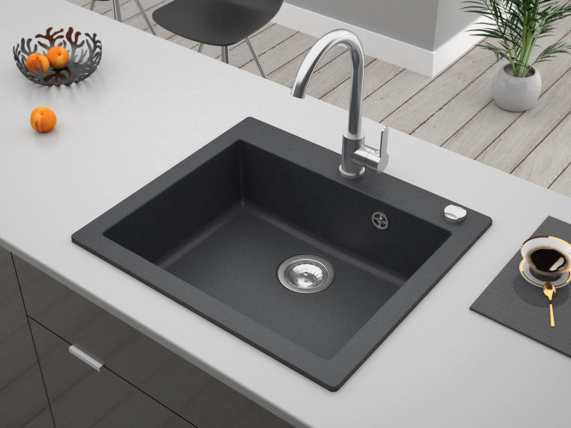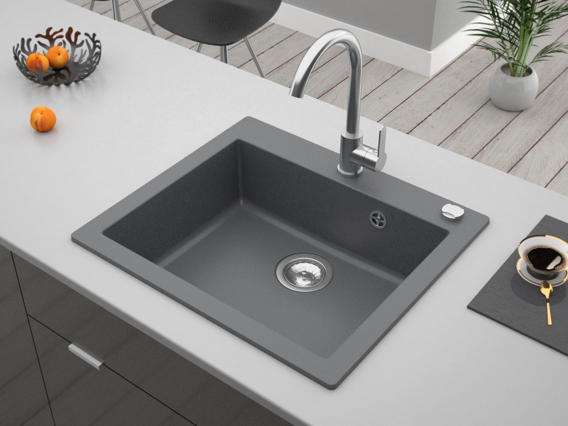 Das durchdachte, kompakte Design der Mojito 60 macht sie zur perfekten Lösung für kleinere Küchenräume oder als zusätzliche Spüle in größeren Küchen. Sie passt sich nahtlos an verschiedene Küchenlayouts an und bietet Ihnen die Flexibilität, die Sie benötigen, ohne Kompromisse beim Stil einzugehen.