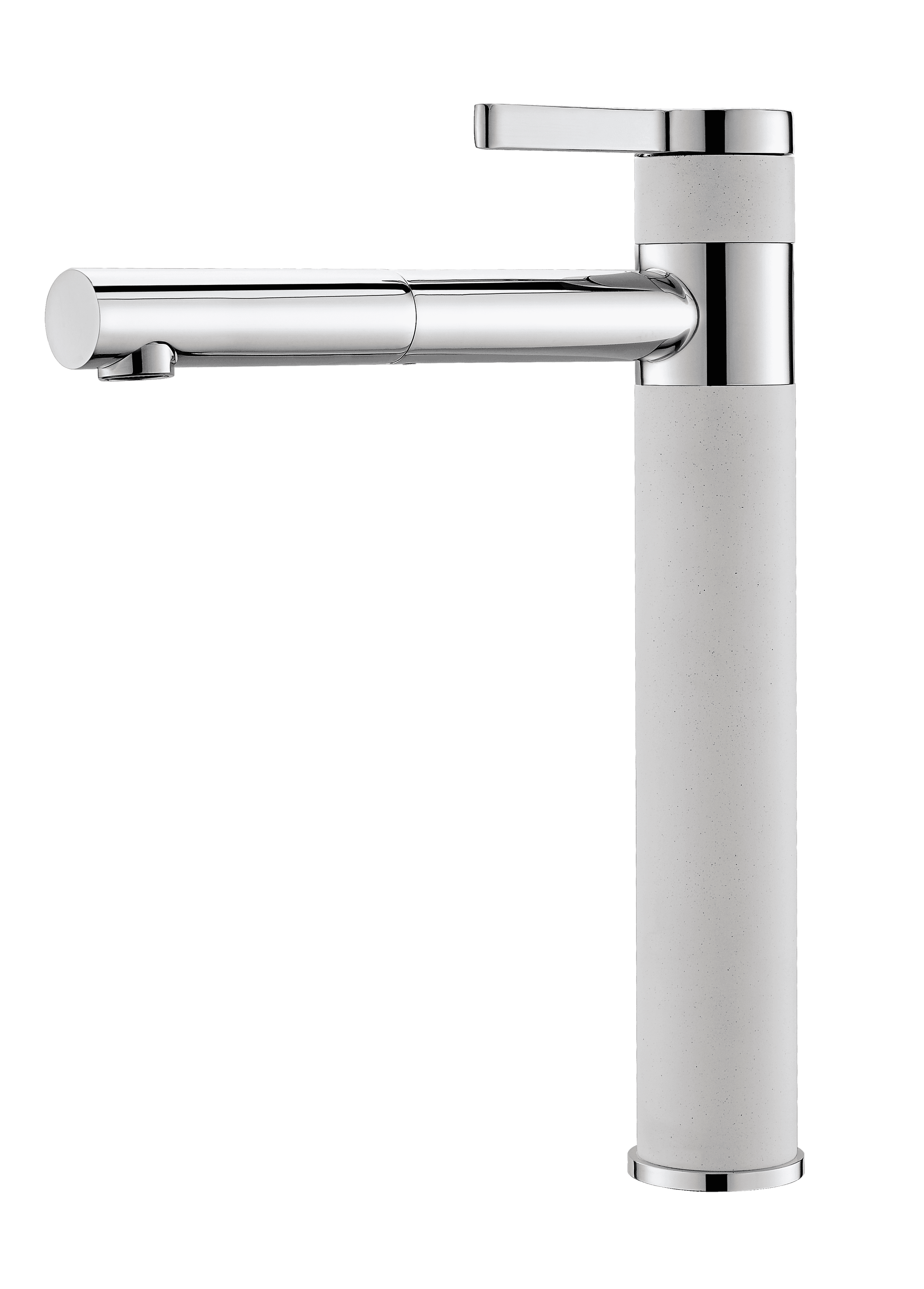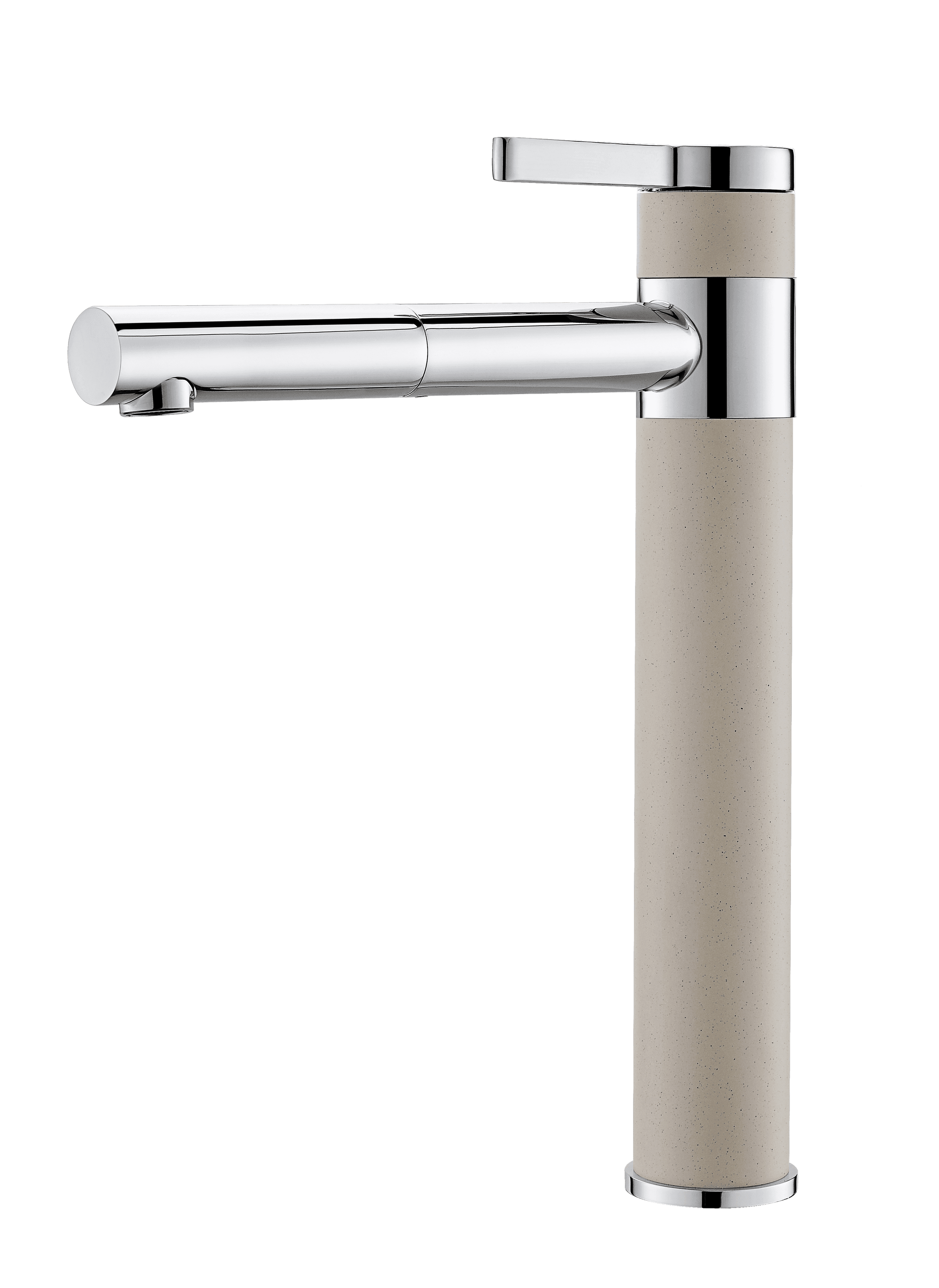 Der hohe Auslauf verleiht der Armatur nicht nur Leichtigkeit und Finesse, sondern ist vor allem äußerst praktisch. Er schafft einen großzügigen Arbeitsbereich unter dem Wasserhahn, der das einfache Spülen und Befüllen selbst größter Töpfe, Vasen und hoher Gefäße ermöglicht – was in einer dynamischen Familienküche unerlässlich ist.